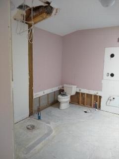 The week before Christmas, a dumpster was brought in and Chris got to work doing the major demo work, which involved pulling up the flooring and demoing the two bathrooms.