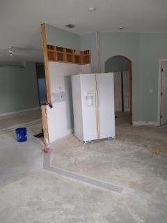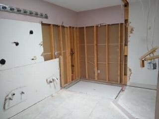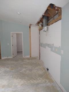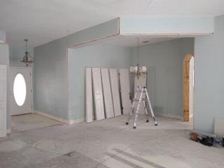 Notice that we removed the rounded corner beads, which will be replaced with proper square corners when the drywall is restored.