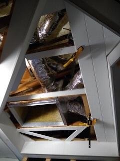 The image on the right above is in the hallway by the guest bath. It was an irregular shaped area and was where the A/C plenum resided, so I had to improvise a bit with the nailers, but the same approach was used. The pictures below show them with all the T&G boards up.