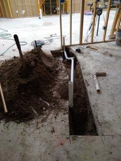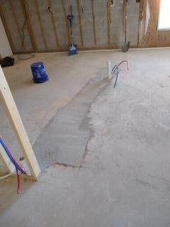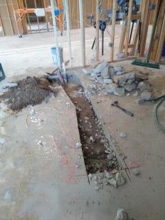 To accommodate the intended kitchen and master bathroom changes, some significant changes needed to be made to the plumbing. This included, moving the drain and water supply lines in the kitchen over several feet to where the new island will go. In the master bath, the drain for the bathtub would have to be moved and a new drain added for the vanity. The toilet in the master bath would also be relocated, so the stack for it would need to be moved. All of this required that we cut into the concrete slab to expose the existing pipes and cut new trenches to route them to their new locations. This was a job I was not going to attempt on my own.