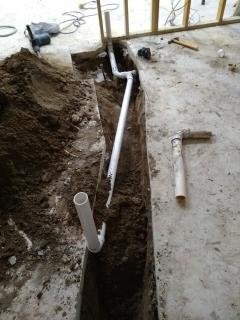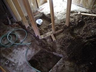 Back in the kitchen, I removed the dirt required to start putting in the drain and supply lines.