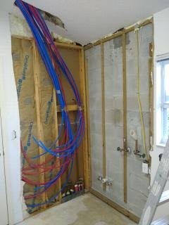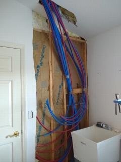 The advantage to this system is that each line can be individually controlled. If I wish to repair or replace a fixture, none of the other fixtures are impacted. I can even go as far as shutting off just the hot line to a faucet, while keeping the cold line charged. I decided that if I was going to go as far as re-piping my house, I might as well get as much control over it as I can. More importantly, though, since this renovation is going to take a while, I want to be able to incrementally bring fixtures online as they are added.