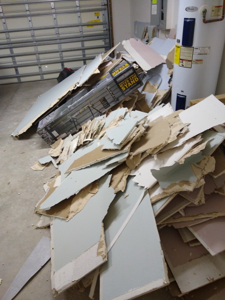 Before calling the hauling/disposal company to collect the debris, I needed to demo the remaining drywall I planned to remove so that it would all be hauled away in one trip. So I took a day to remove the rest of the drywall from the dining room.