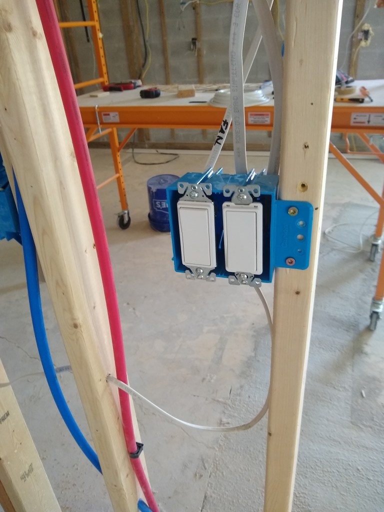 Of course, the other ends (lights) are not hooked up and won’t be for some time. This task was to simply get the switches in place and tested. They were already connected to the breaker, so I was able to test them using a small handheld tool that lets me know when the line is hot.