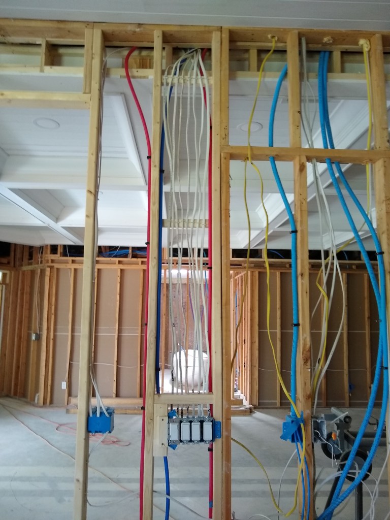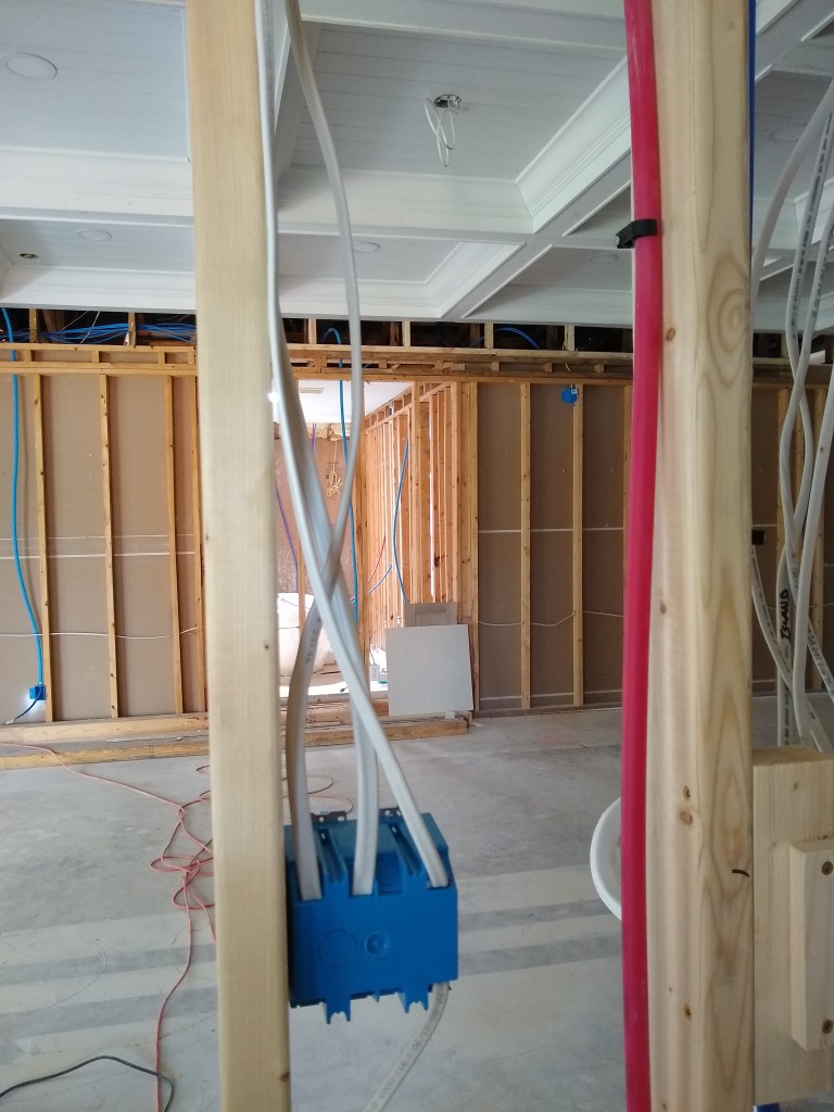 With the network cables patched in to the rack, the remaining networking tasks include adding a switch, router, modem, and battery backup. But I do not intend to get to that until I am ready to start using them, which won’t happen until we are approaching move-in time. My focus at the moment is to address the things that need to be done while the walls are open. So next up is electrical work; specifically, hooking up switches and outlets.