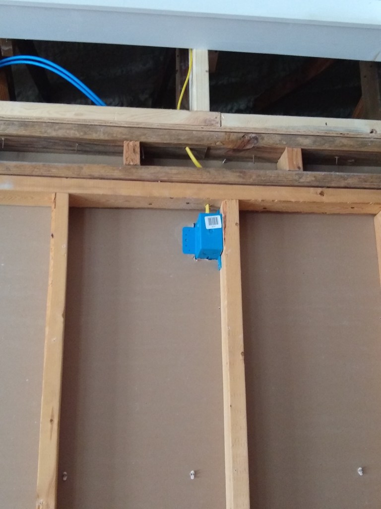 The following images show the setup for the sconce that will sit on the wall opposite the switch.