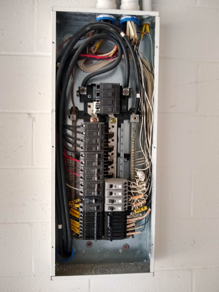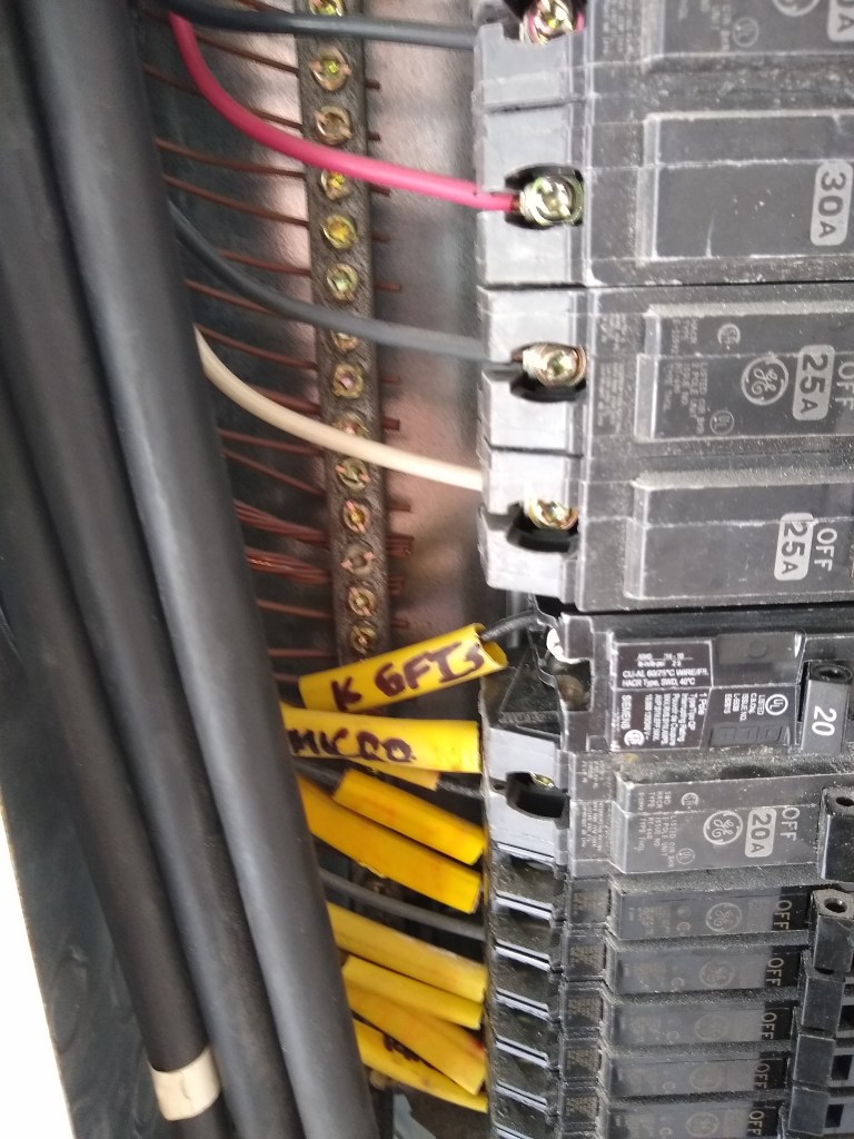 I still had a couple of wires that needed to be connected to the breaker panel. They had previously been fed into the panel, but I just left them dangling. I wasn’t sure how to do the hookup part, so I put it off until now. So, on the next trip, I planned to mess with the breaker panel.