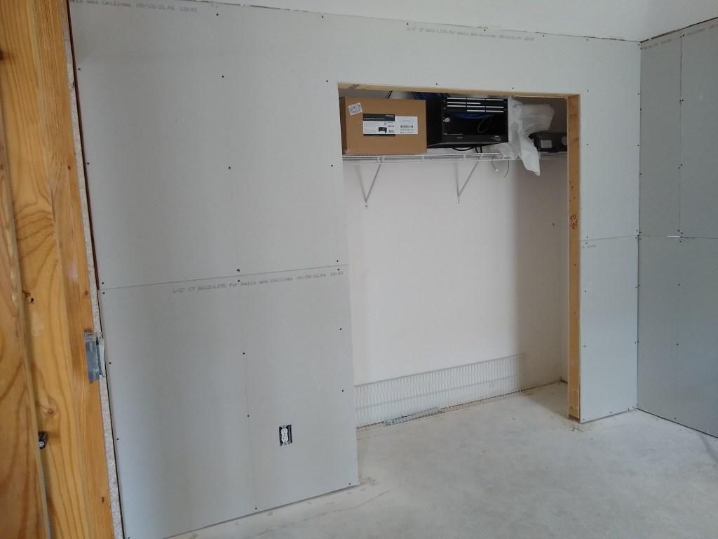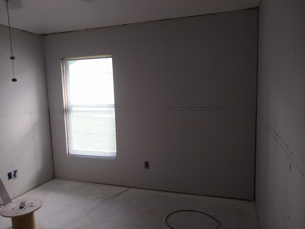 As of the time of this posting, I have hung two bedrooms (guest bedroom and office) and am half way through the third bedroom (workshop). I have ordered 100 feet of mass loaded vinyl to use as sound insulation between the workshop and office, which will arrive this weekend. I will put it up and see how it works before purchasing more for the other interior walls to which I intend to add sound insulation. Where it makes sense, I want to reduce the sound that can travel between rooms (i.e., bathrooms and bedrooms). But I’ll talk about that in another post. Once the drywall in the workshop is hung, I think I will return to the guest bedroom and try my hand at mudding and taping so I can get some experience with that before continuing with the hanging. It is likely that the lessons learned from that experience will impact how I hang the remaining drywall. Since there is so much more drywall to hang, now’s the time to discover them. So stay tuned.