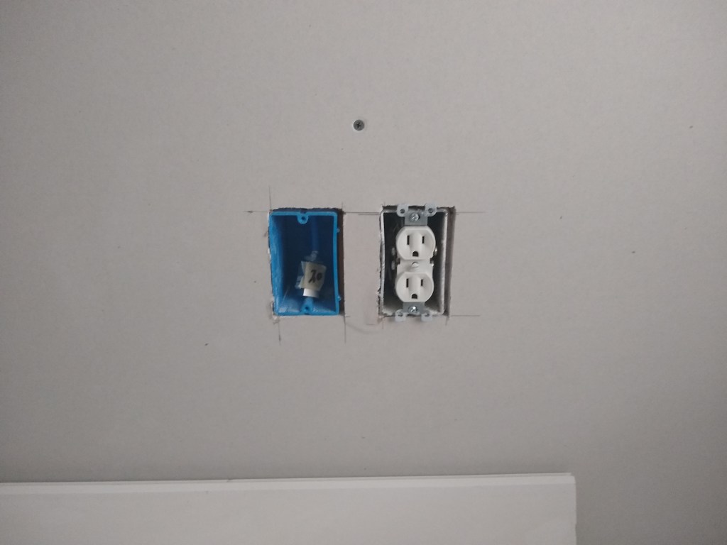 To cut the openings for the outlets, I started using the manual approach whereby you simply measure the distances and then cut with a drywall saw.