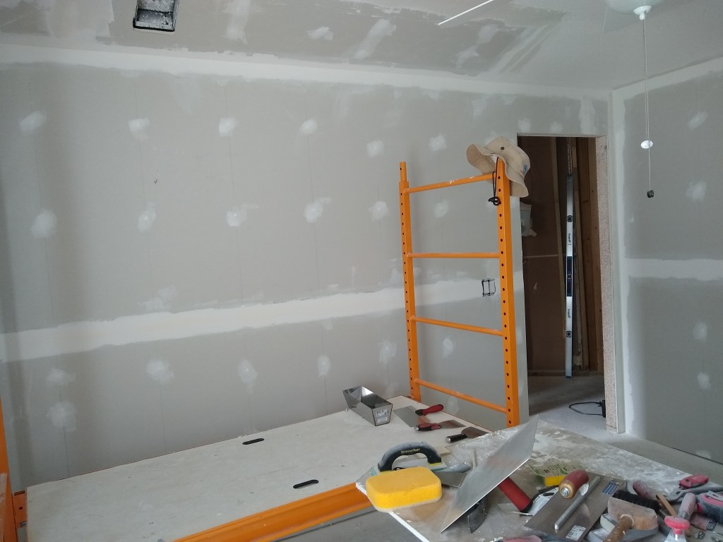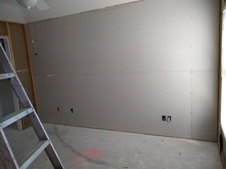 Next, I covered the MLV with drywall to finish the drywall hanging for the workshop. As alluded to in the beginning of this post, this was the true last bit of drywall I would hang before circling back to finish the drywall in the guest bedroom