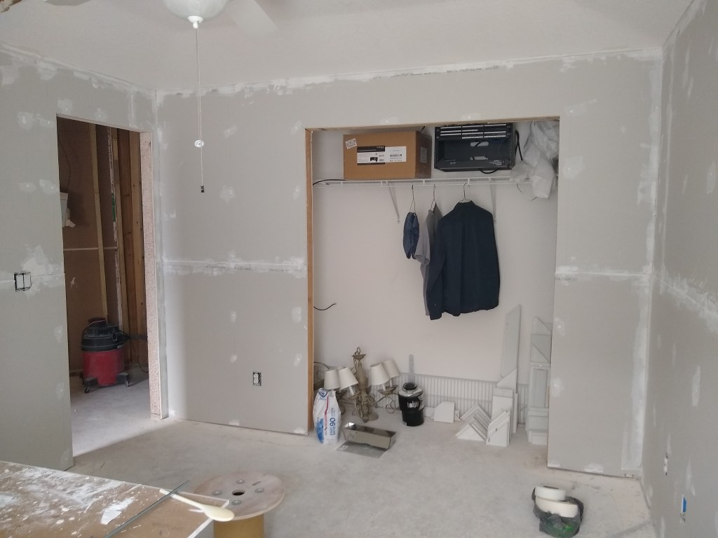 In this post I will describe the work I do in the guest bedroom. As mentioned in the last post, I decided to stop hanging drywall after getting three of the rooms hung (almost – more on that later in this post). I decided to circle back to the guest bedroom and move forward through the levels so that I can gain experience that I can use when I move on to the other rooms.