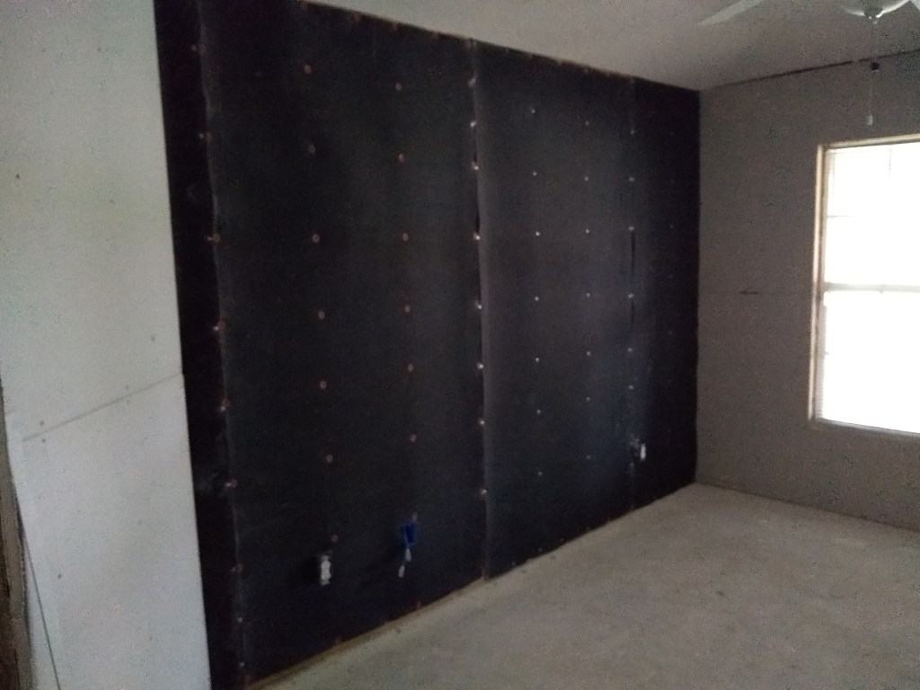 After doing all this, it was time to determine if the MLV provided some level of sound insulation. To do this, I played a song on my phone and placed the phone behind the wall (in the office). I then compared what I heard with what I heard when the I moved the phone where no sound insulation was in place. Unfortunately, I did not notice any difference, which surprised me. So I will try using a different material next time and see if it improves things. MLV is expensive and hanging it is difficult because it is so heavy, so I am happy to try another material. But that will have to wait until I am ready to continue hanging drywall. For now, it is back to the guest bedroom.