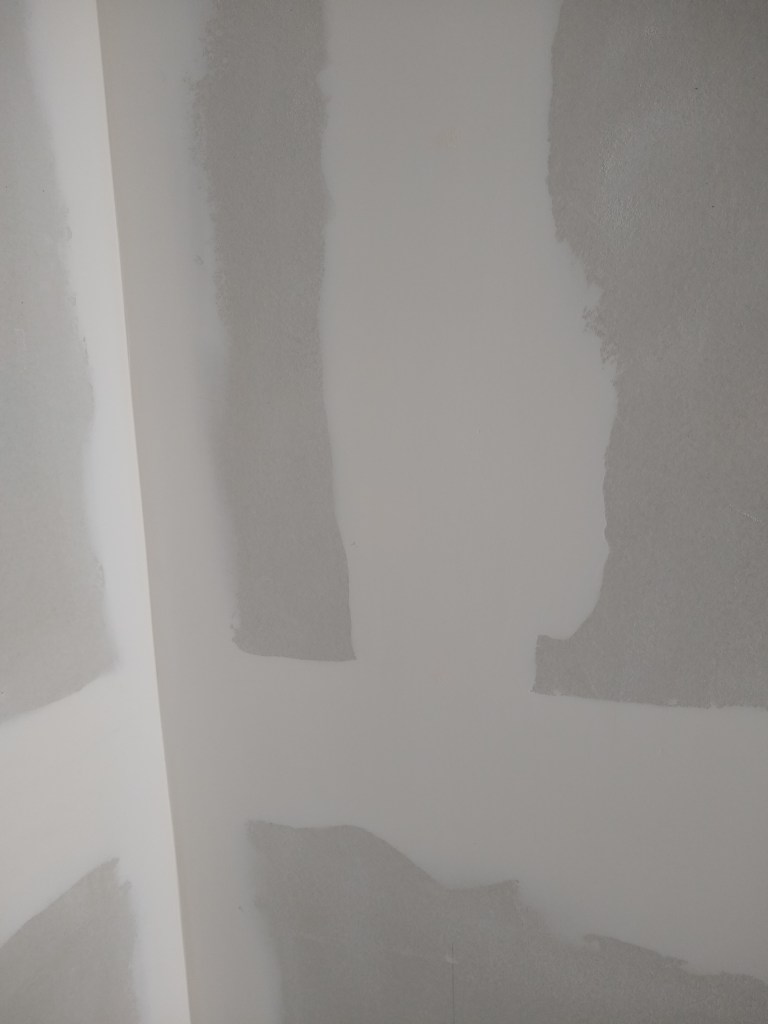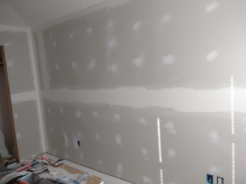 For skim coating, I tried a few different methods. I found another YouTube channel I liked (Paul Peck Drywall) that showed how he used a paint roller to apply the mud before using a 14″ knife to remove it. So I experimented a bit. I first tried using the trowel to both apply and remove the mud. Then I tried the paint roller and the 14″ knife. I did a bit of back and forth between the two before finally settling on the roller/knife approach. You can only use the paint roller when skim coating, because the mud is thinned down enough to make the roller work. When cover coating, you will not thin the mud (or only slightly), so applying it with a roller is not practical. I found that applying the mud for skim coating with the roller was faster and easier, so that became my preferred method. Perhaps I’ll change my mind some day, but at my current skill level, this works well.