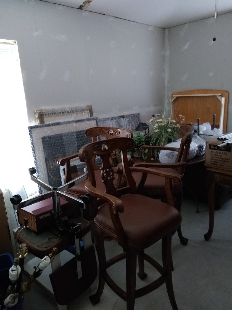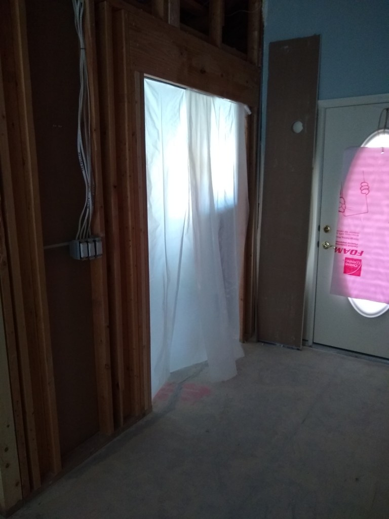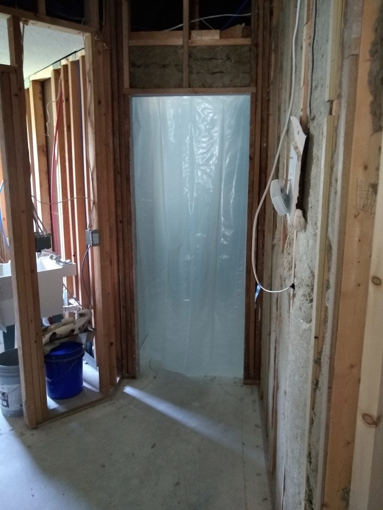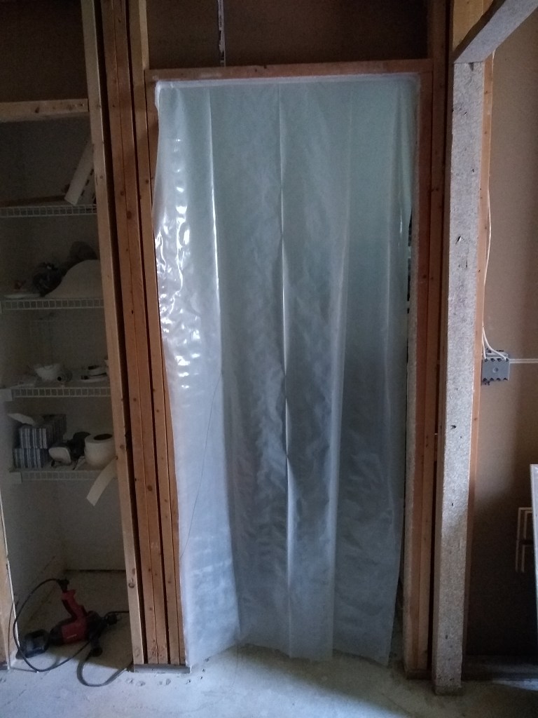 I was in the new apartment on October 16th and required a bit of time to settle in, but I got back to work on the house not long after. With most of my stuff from the move stored in three of the four bedrooms, my first job was to hang barriers to protect it from the dust. Below are some pics of the three rooms I used for storage and the barriers I put up.