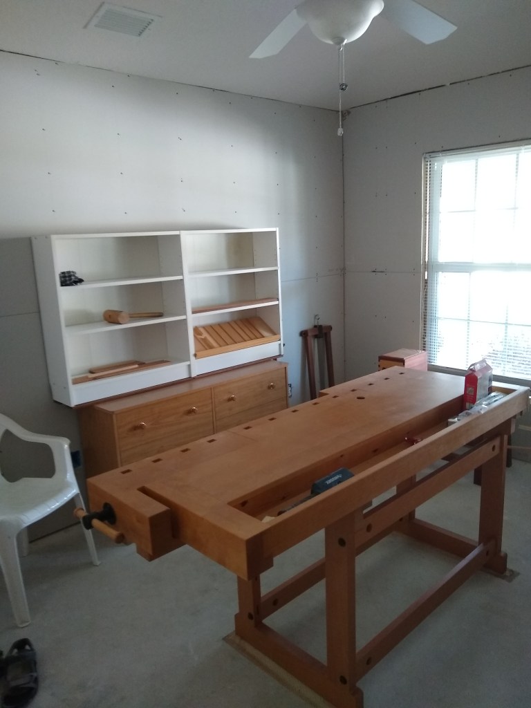 With the move complete, the plan was to get back to hanging drywall. However, I was now without a drywall lift. I had been using a lift I borrowed from Chris, but he needed it, so I had to buy my own. This delayed my return to work by a few days as I awaited its arrival. Once it showed up, I started work in the foyer, beginning with the ceiling, but another problem arose that forced me to work elsewhere. I was in the process of planing down furring strips to even the ceiling joists when my thickness planer belt broke. I had to order another, which will take weeks, so I decided to move onto to the dining room.