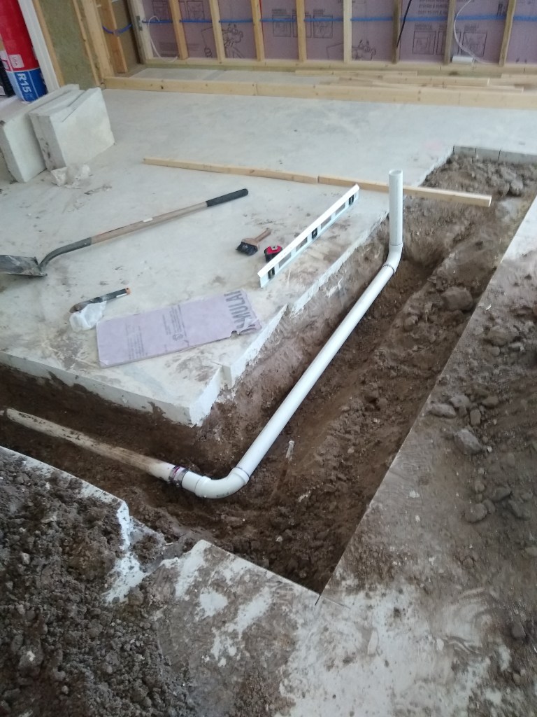 The inspection went without incident and I began the process of filling in the trench with concrete.