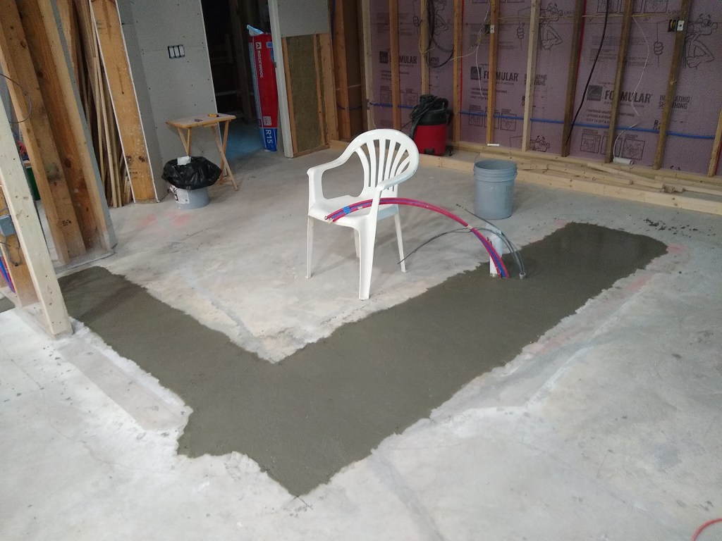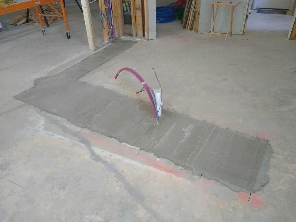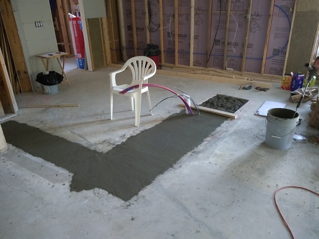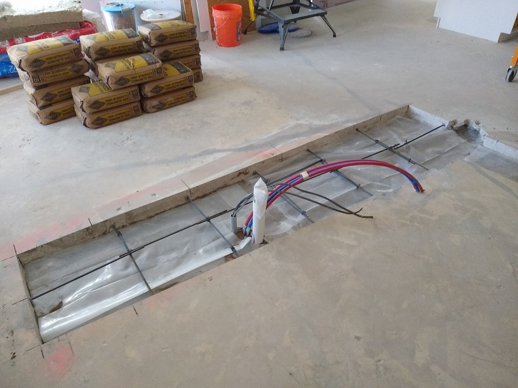 As mentioned in the post about the master bathroom for this month, I had a period where I had to wait on deliveries, so I decided to grind smooth the concrete I had poured in the master bathroom and kitchen. Here is an image of the trench in the kitchen after I smoothed it out.