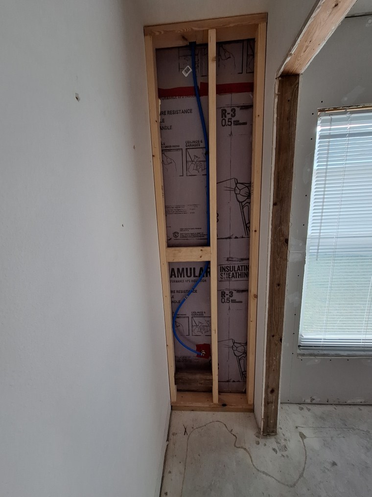 Above and below the opening to the spigot, I added some blocking because I intend to keep this area accessible by putting in a door.
