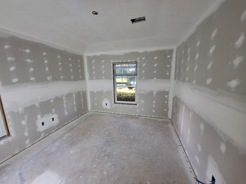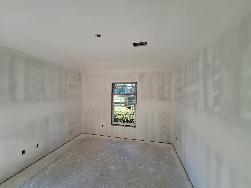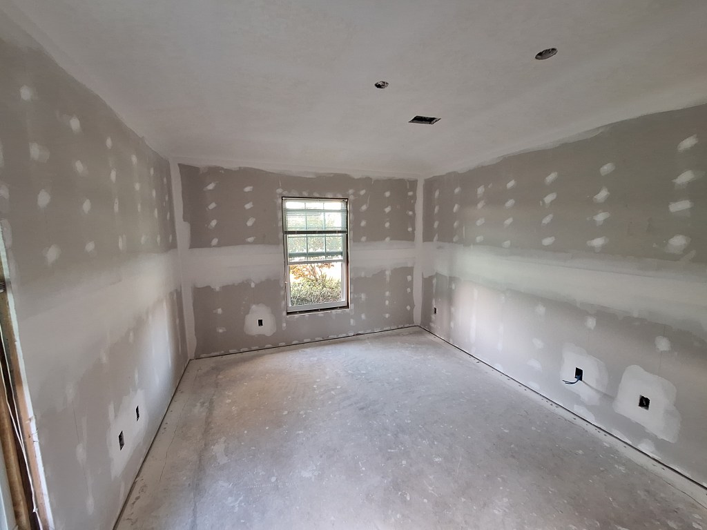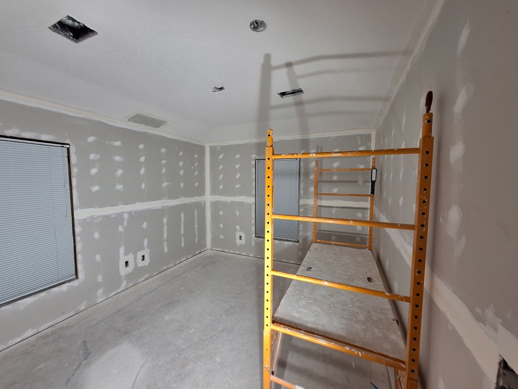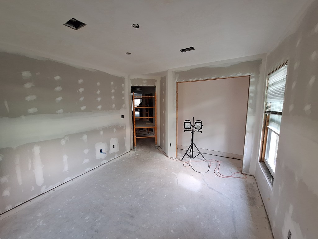Once the office was cleared out, the first order of business was to get the drywall ready for the inspection required before I can commence taping and finishing. I’d already hung the drywall long ago and even did some of the prefilling. In fact, it was the second room after my first attempt at hanging drywall (the guest bedroom). So the drywall was up, but it needed more screws than what I originally used – something I subsequently learned once inspections became part of the process. So I started with that. I had also cut a rough opening in the ceiling to allow for the Ethernet cables to run down an exterior wall. That opening needed to be enlarged so that it extended from one ceiling joist to the other. This was necessary so that the patch piece I would fit into it had something to screw into.