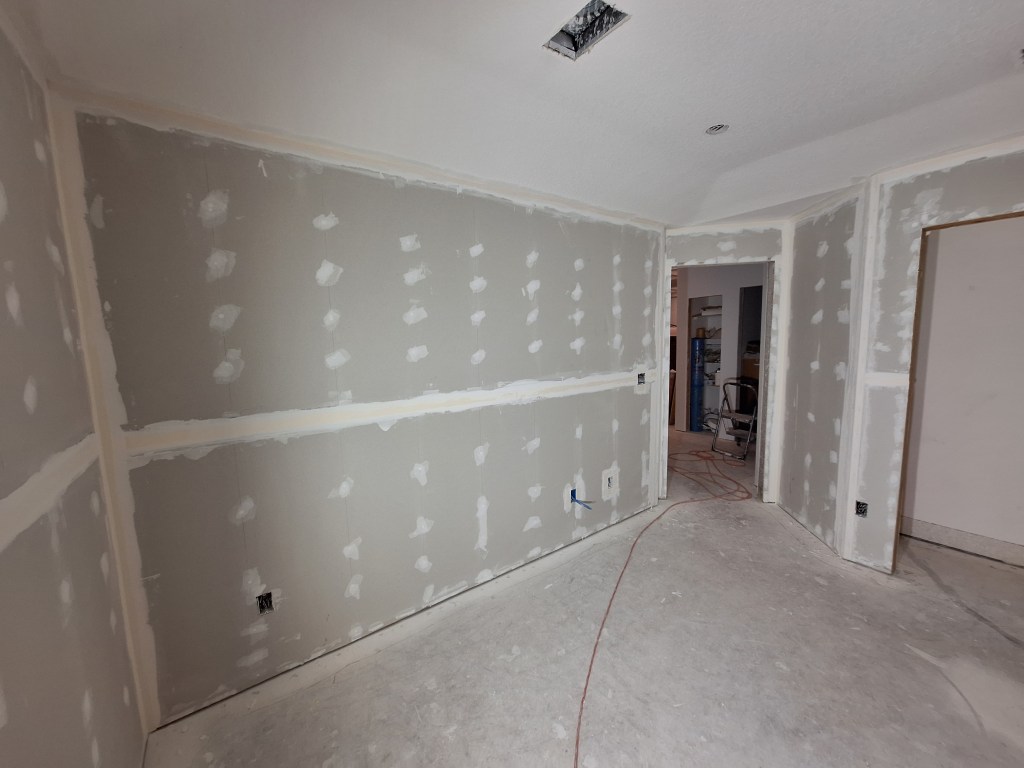 The drywall was hung, leaving an opening for a door that will eventually be installed.