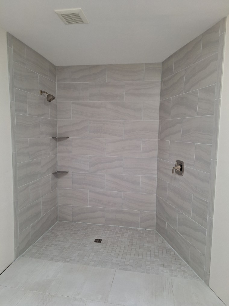 The caulking was a real nuisance. Because this is a wet area, a silicone based caulk is required. I used one that matched the wall grout color. It was really messy and required I redo the area between the walls and the floor to get it looking decent. Unlike regular caulk you use for dry areas, the silicone stuff is not user friendly.