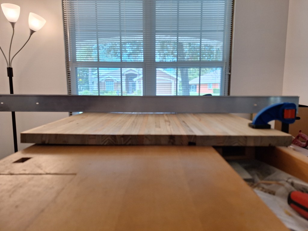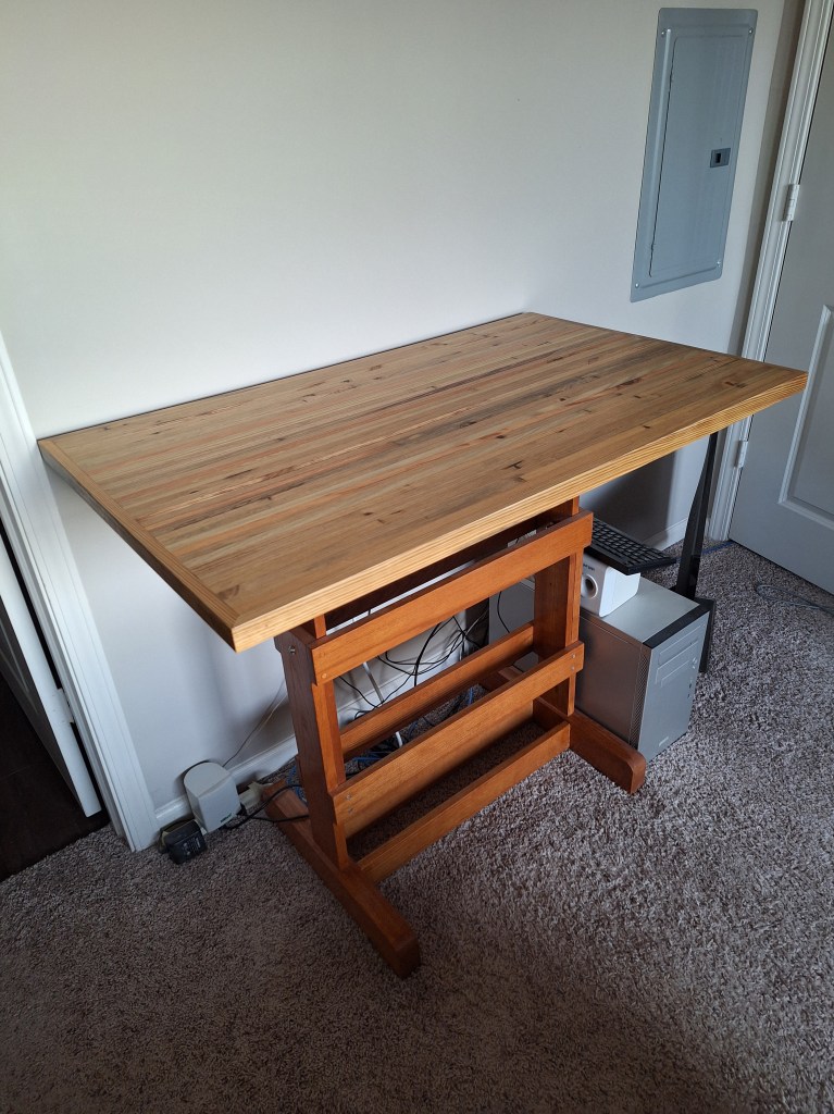 I’ve been updating this post as I went along in this project, but it is only on this last update that I’ve been able to do it on my new desk top. I am very happy with it. My mouse has a much flatter surface to move over and I love having the extra space. This was a fun project, and I look forward to doing more of this kind of thing (woodworking, as opposed to construction) once I’m settled in the house.