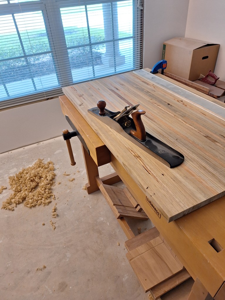 Although this does not have to be perfectly flat, I had to do something about this. So I pulled out my number 7 jointer plane and got to work.