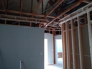 The image on the right above is in the hallway by the guest bath. It was an irregular shaped area and was where the A/C plenum resided, so I had to improvise a bit with the nailers, but the same approach was used. The pictures below show them with all the T&G boards up.